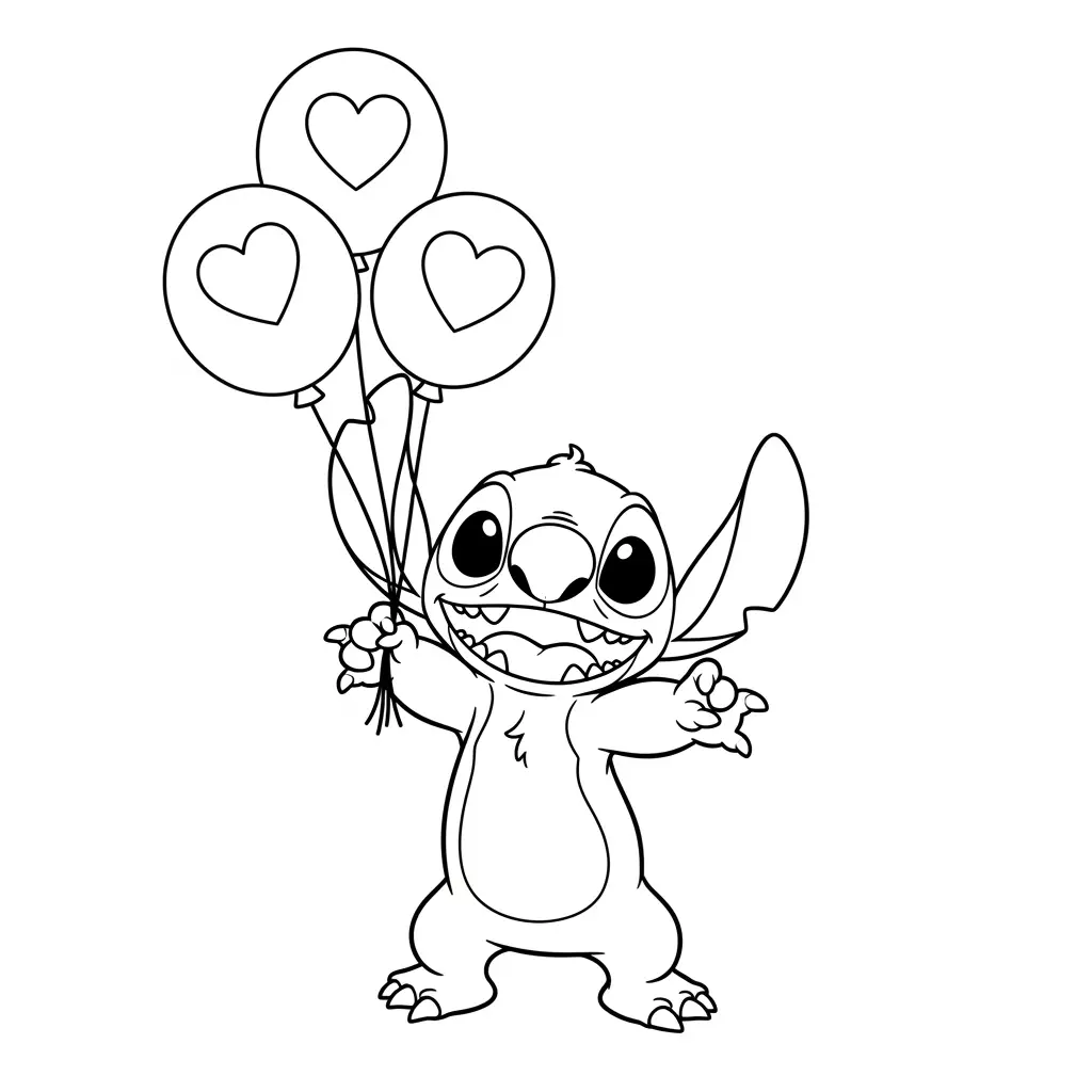 Desenho do Stitch e Angel com balões coloridos para colorir