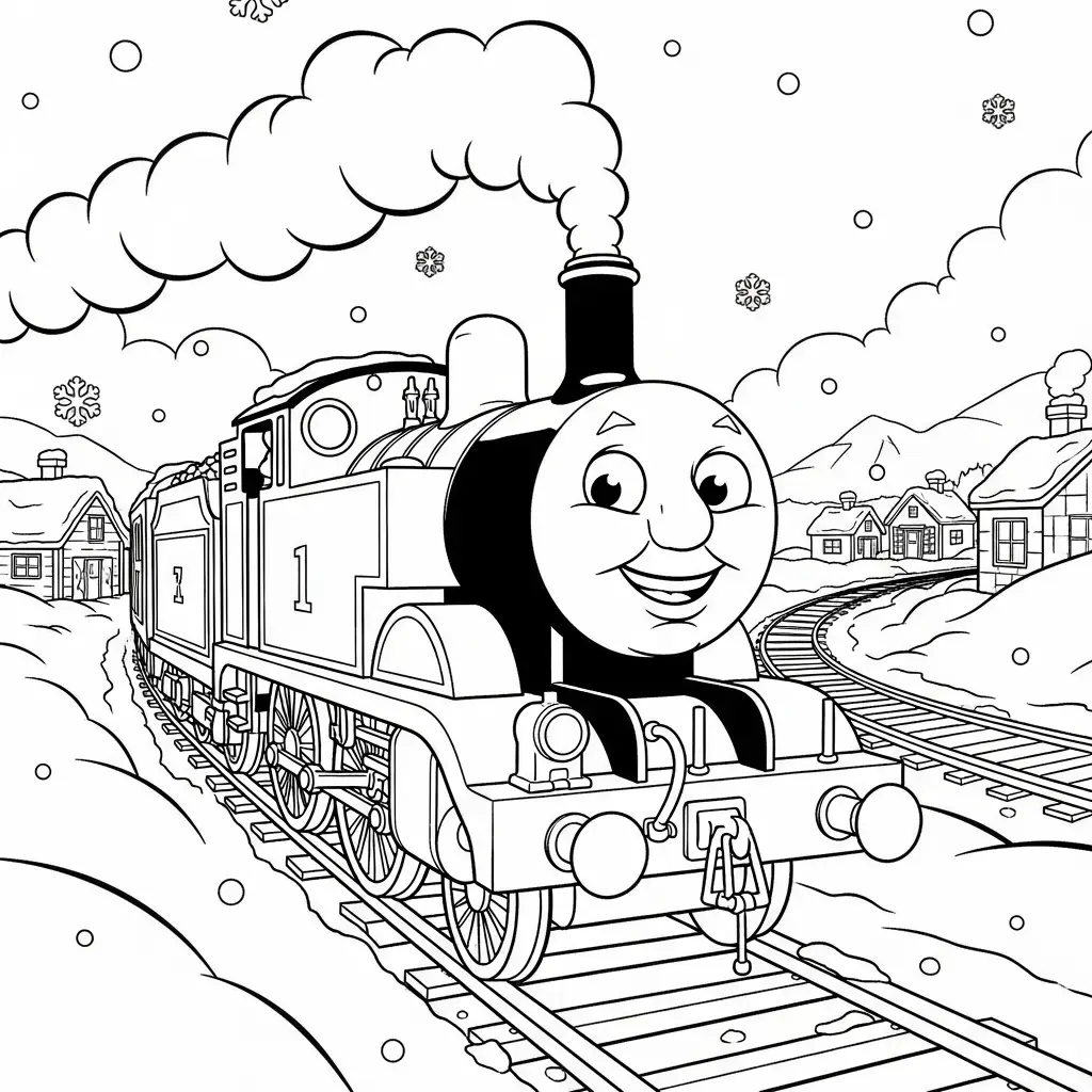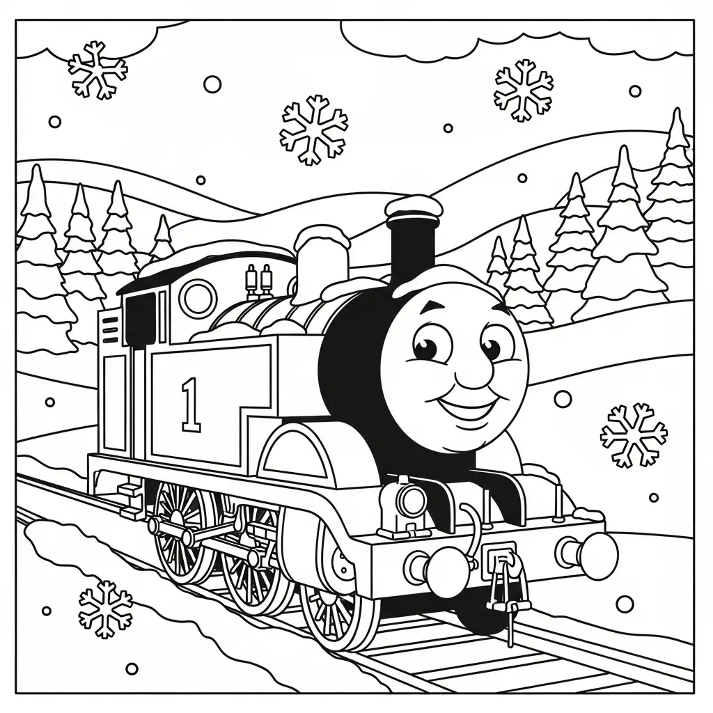 Desenho do Thomas e seus amigos durante o Natal para colorir